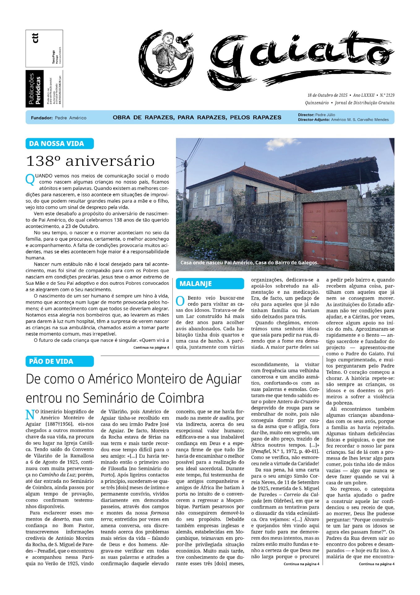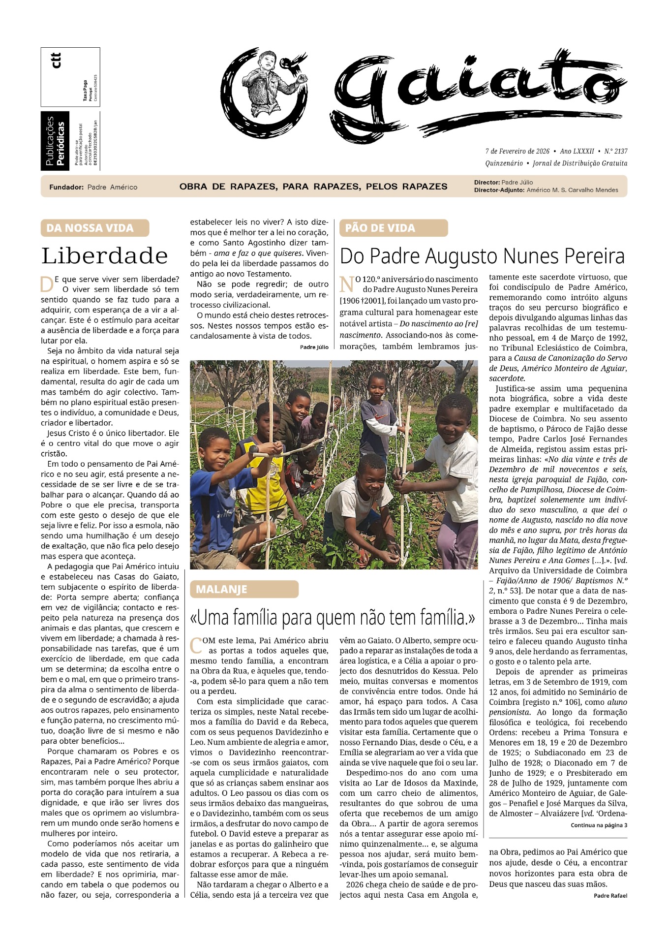 A assinatura d'O GAIATO não tem preço